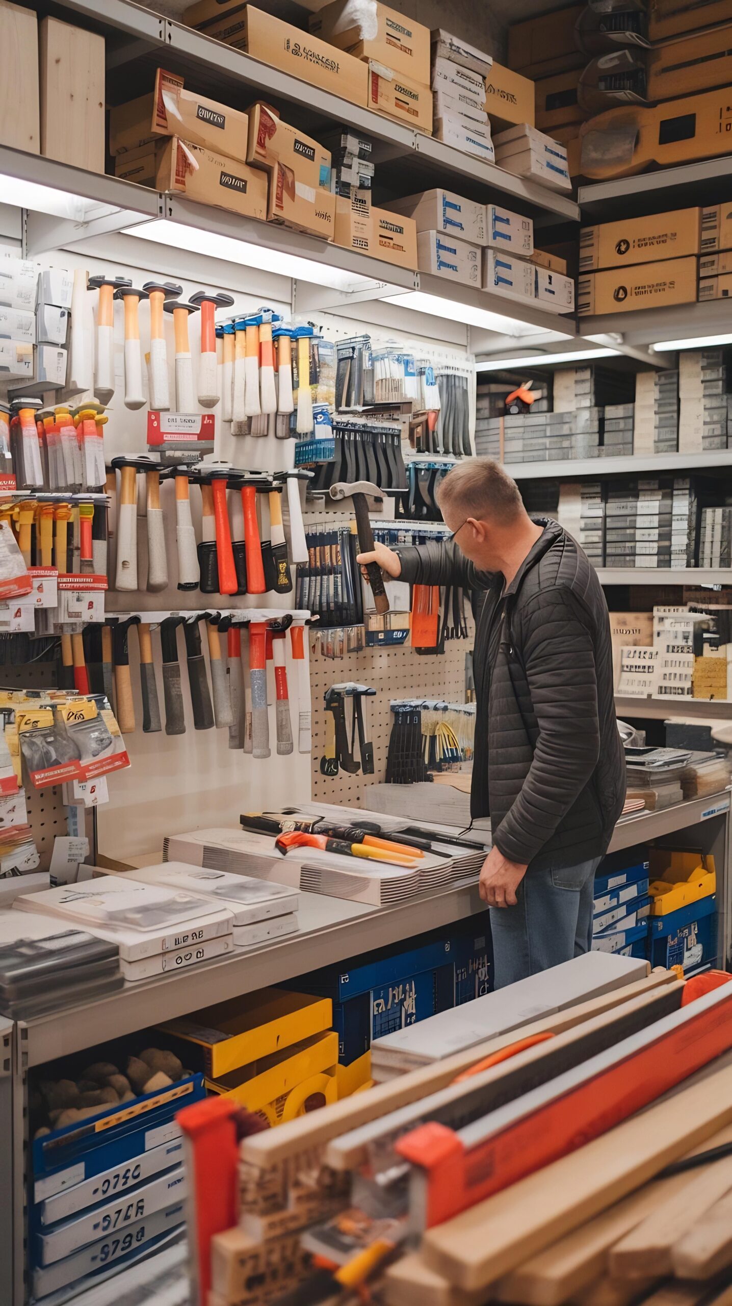 O colaborador compra materiais de construção diretamente na Aviz, dentro do limite definido pela empresa.